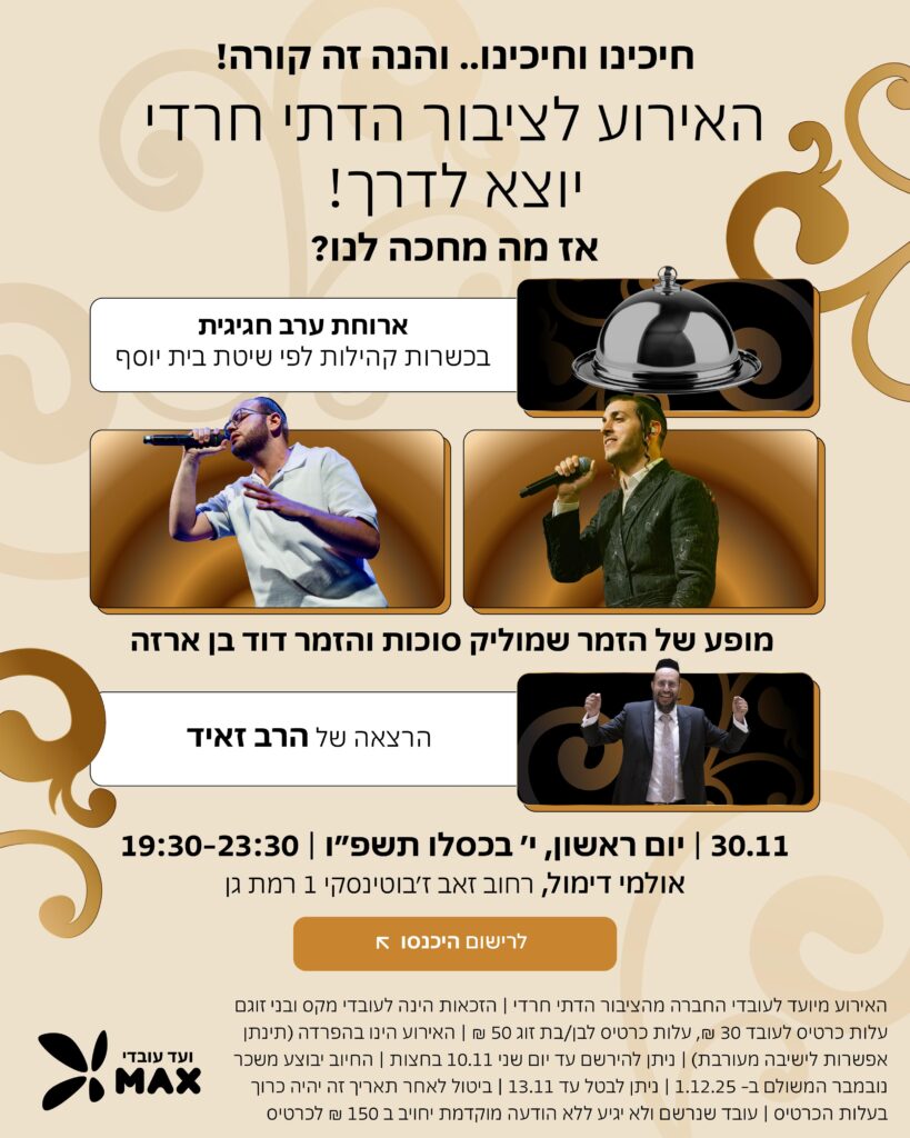 האירוע מיועד לעובדי החברה מהציבור הדתי חרדי | הזכאות הינה לעובדי מקס ובני זוגם